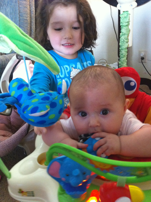 Ellie Jane got a borrowed jumper from my Brother, Adam's wife Nikki about a week ago. It's exactly like the one Scarlett had, and she was an instant pro at maneuvering around to get all the toys... Whereas Scarlett had a hard time with those things as a baby. All the better that El is a fast study, I'm sure she will be chasing Scarlett in no time. Here are some pics.